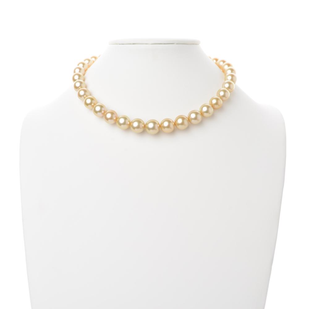 This gorgeous strand is composed of gem-quality golden South Sea pearls from the Philippines. South Sea pearls are the epitome of luxury and the most valuable pearls produced in the world today. The pearls are perfectly round with clean surfaces and a striking gold bodycolor. This is as good as golden South Sea pearls can get!